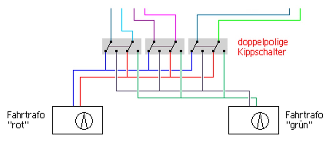 A két trafon akár ellentétes irányt is beállithatsz / választhatsz azaz a korábbi egy SPDT kapcsoloval nemcsak a trafot rendeled a szakaszhoz, de az irányt is.