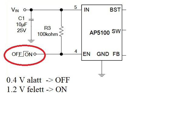 Az EN müködését már tisztáztuk, miért van ott a ZD10 meg az ellenállás ami az EN bemenetet 10 V alatt a 0 -ra huzza 10 Volt felett meg magasra kapcsolja.