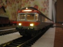A tetőt és a sárga csíkot Bátyám fényezte újra, én meg elektronikát raktam bele, szokásos saját készítésű dekóder szünetmentes áramforrással. Rá lehet programozni a vontató jármű címére, így ha az irányt vált, a vezérlő kocsin is megtörténik a fényváltás. Jah, és kapott még új kerekeket , és utasokat is.