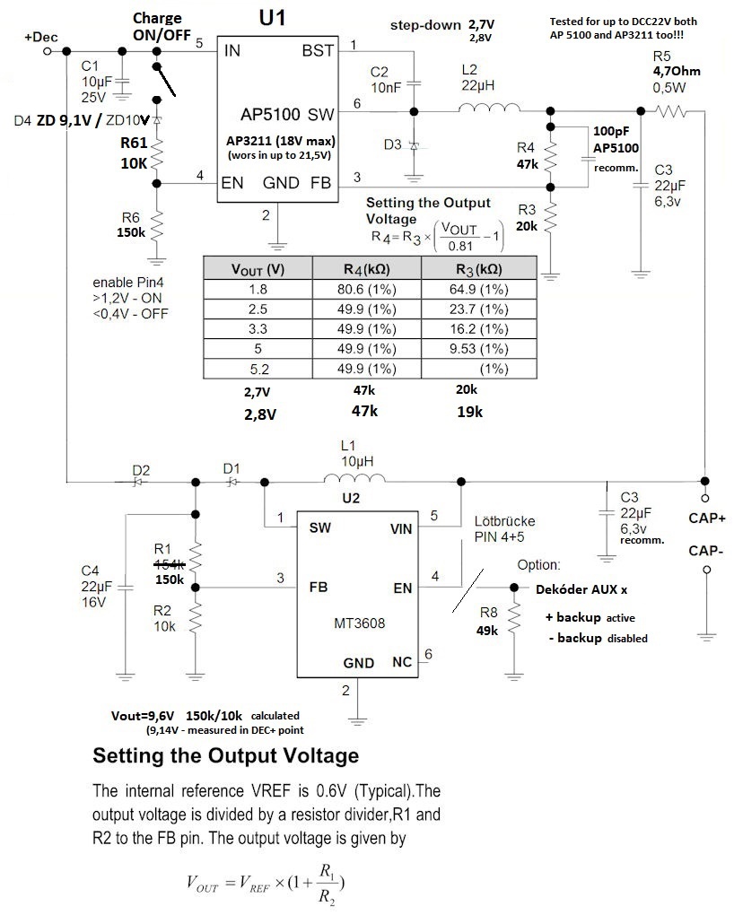 Úgy néztem az EN láb, és a 10V-os vezérlő zenerdióda KÖZÉ is kell egy ellenállás R61. (Az eredeti Stummi-fórumon is előjött, hogy az AP ic-k szeretnek elfüstölni, vagy nagyon melegszenek főleg Maerklineseknél - ott ugye van 19-20V dekóder után.)