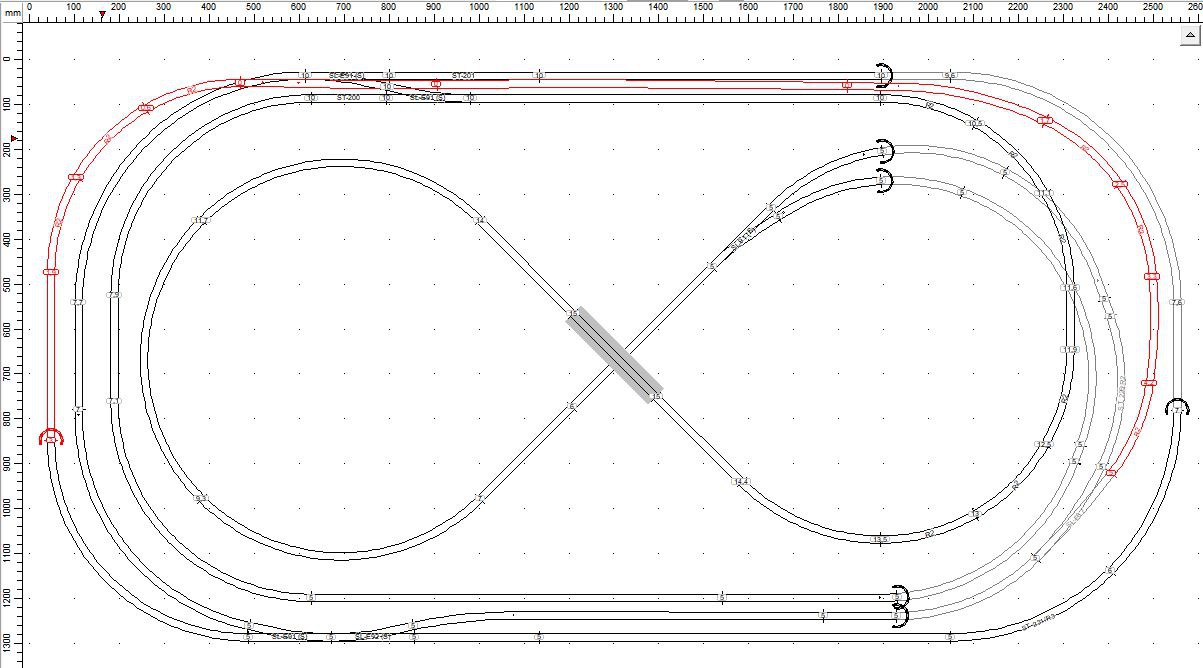 Szívesen csináltam, a tied is tetszik. A pálya vonalvezetését is jónak tartom. A nagy állomáson én a második és a harmadik vágányt (a középsőt és a külsőt) a jobboldalon is összekötném, így a külső körön vonatkeresztezést is lehetne csinálni.
