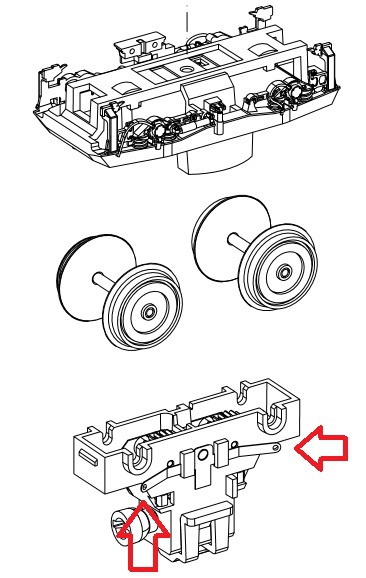 Robbantott ábrán látszik, hogy a kerék oldaláról szedik az áramot a lemezek. Meg kellene őket nézni, hogy nem-e ugrottak ki a helyükről, ill a felületük tiszta-e és hogy jól feszülnek-e a kerékhez. Persze ehhez szét kell szedni a forgóvázat, vagy a forgóvázat kivenni a mozdonyból.