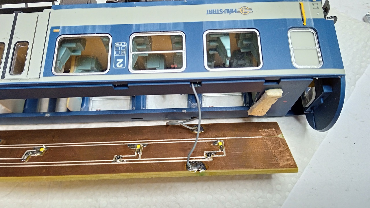 Egy PIKO Hobby kocsiba be lehet drótozni akármit, de egy BRAWA kocsi az nem a játék kategória. Egy bele illő panelt két perc beszerelni, ezt meg órákig tart, és a végeredmény erősen kérdéses. Ha rendesen működnének, nem lennének itt. Nem csak ez a kettő...