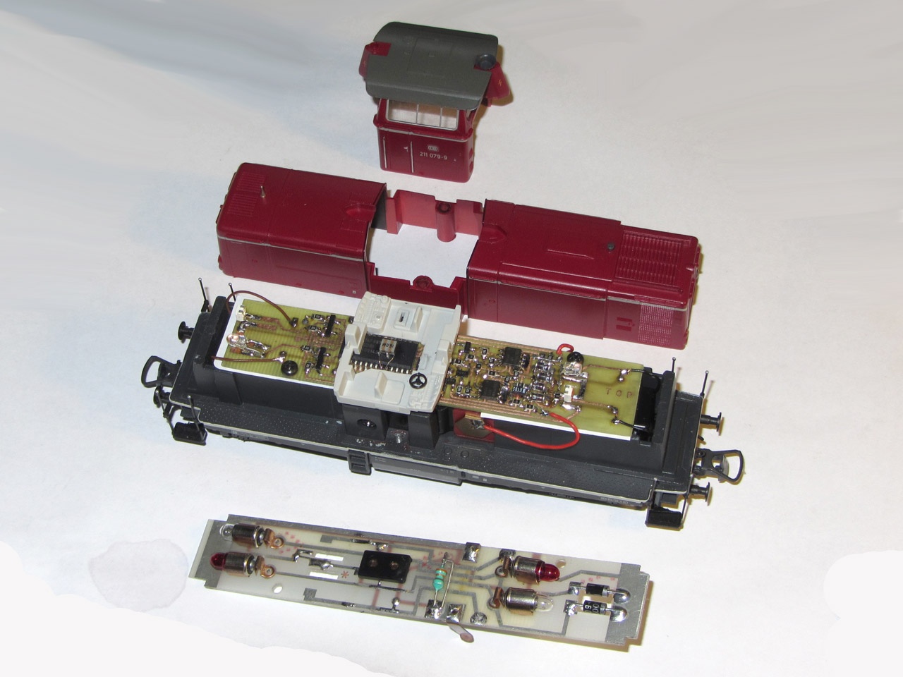 A dekóder foglalattal ellátott mozdonyokban eddig csak a motor szűrő induktivitáson és esetleg kondenzátoron kívül más nem szerepelt, itt meg SMD alkatrészek sokaságával találkozni, még háromlábú (tranzisztor?) is van köztük! Lehet erről valahol kapcsolási rajz szinten információt szerezni?