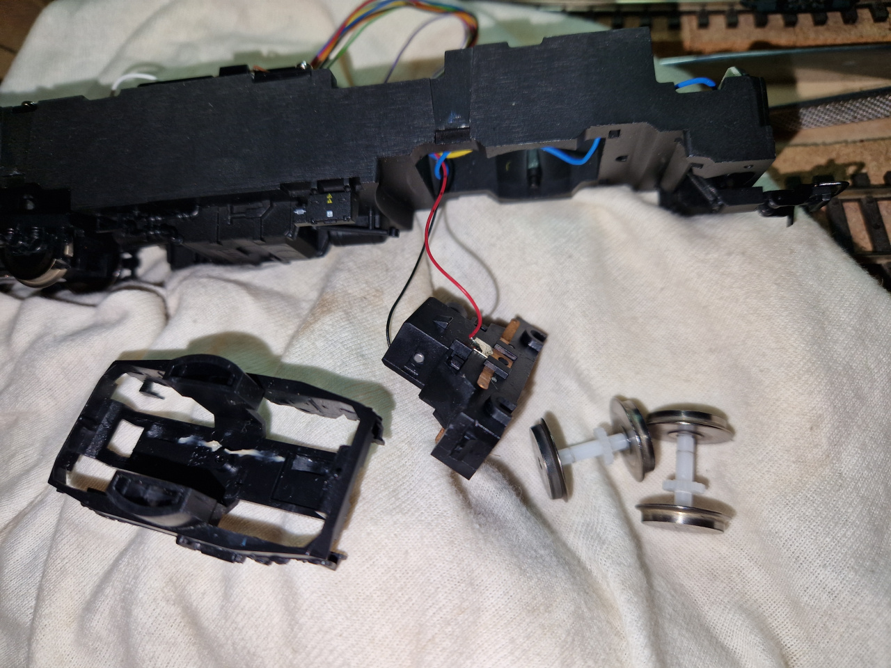 A kerekeket, áramszedő felületeket letisztítottam minden mozdonynál. A többi 4db megfelelően működik, egyedül ezzel van folyamatosan gond. Nemrég kapott a Traxx Digitools hangdekódert. Nem lehet, hogy a dekóder okozza a gondot?