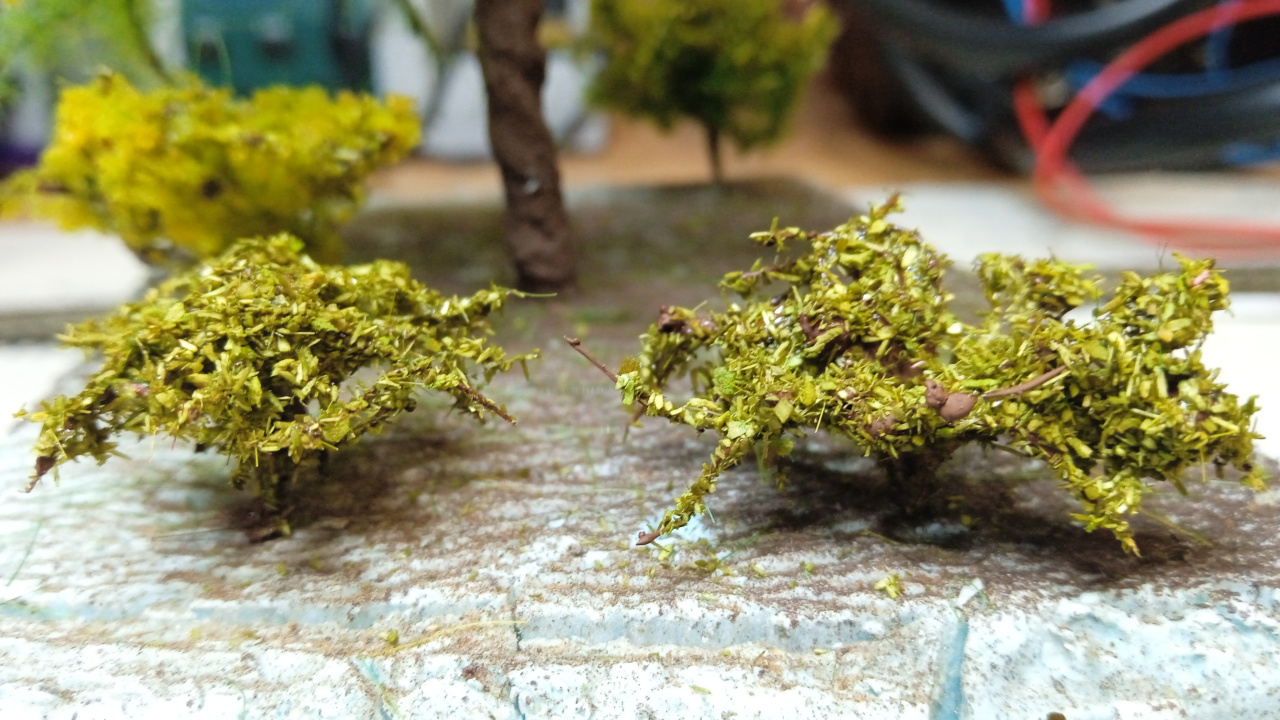 Elvileg igen. Csak ezek a bokrok (és még pár darab, amit csinálni fogok) az épülő H0 asztalon lesznek, aminek ide írom az építését.