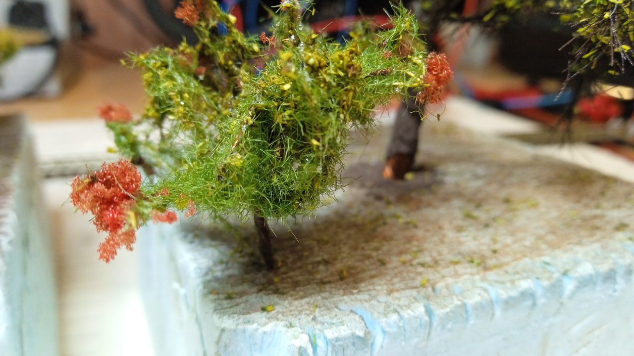 Amikor felteszed a terepasztalodra, akkor csak fúrsz egy lyukat az alaplemezbe, ahová "elülteted" a bokrot,vagyis beragasztod.