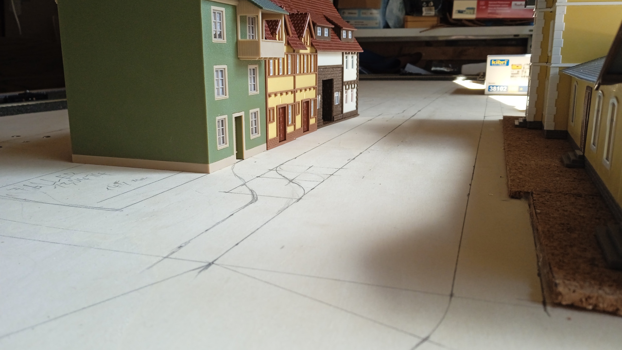 Talán látszik a képen az utca, a járdák, a buszmegálló öble ceruzával felrajzolva az alaplemezre.