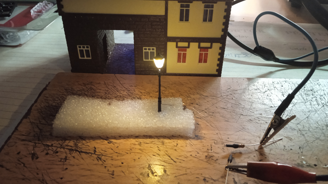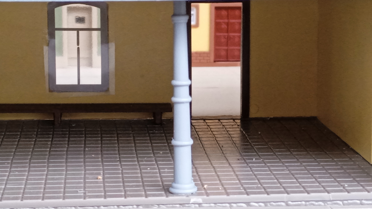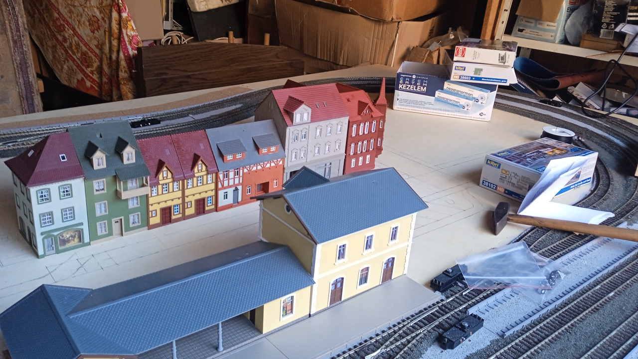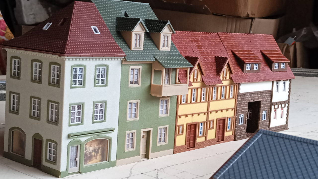 Egy hangulatkép a városi utcáról, még csak így nyersen. A Vollmer épületén, az ajtó feletti lámpa majd világítani is fog. Eredetileg erre a gyártó nem gondolt, de azért mi megcsináltuk. |