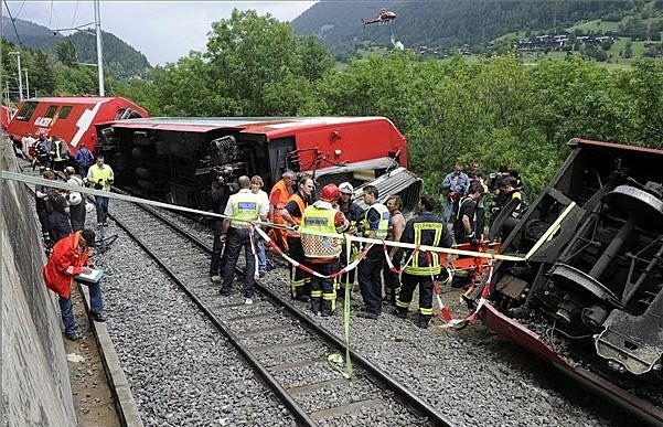 Súlyos baleset volt Svájcban: Kisiklott a Gleccser (Glacier) Expressz. Sajnálatos módon egy ember meghalt, 42-en megsérültek a balesetben. Az eset "érdekessége" (ha szabad így fogalmaznom!), hogy ez a "világ leglassabb expressze", mindössze 30 km/ó sebességű... Ennek ellenére, a fetői szépségű szakaszon (St. Moritz és Zermatt között közlekedik a vonat) 3 kocsi siklott ki, amiből kettő fel is borult. (Szerencse a szerencsétlenségben, hogy csak ilyen lassan ment, ha gyorsabb, belegondolni is szörnyű, mi történt volna!  ) |