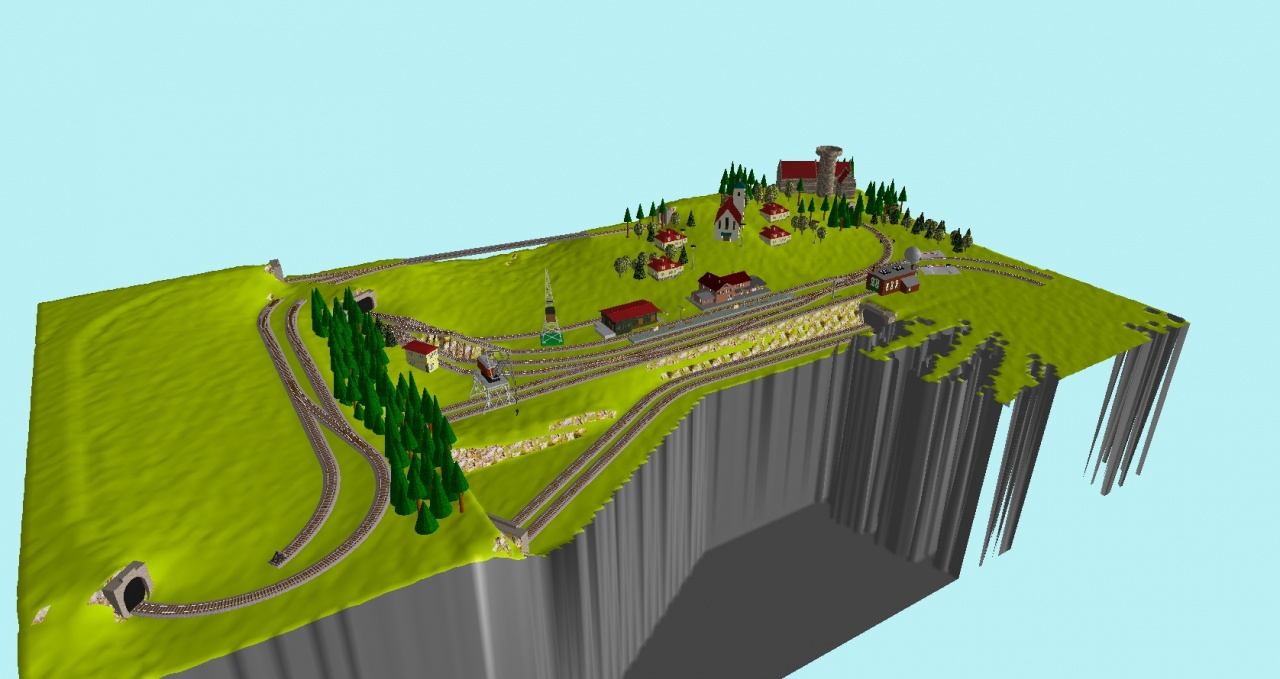 Ami a kérdésedet illeti: Minthogy jómagam TT-ben modelleztem, így a H0 méretarány sínanyagával nem vagyok tisztában, de a nagyobb felületen (100x145) szerintem simán elfér egy "emelet", amit pl. egy hegy tetejére telepített állomással lehet megoldani. (Esetleg egy kihívás lehet a "negatív emelkedés", azaz az általános terepszint alá nyúló pályaszakasz építése is.) |