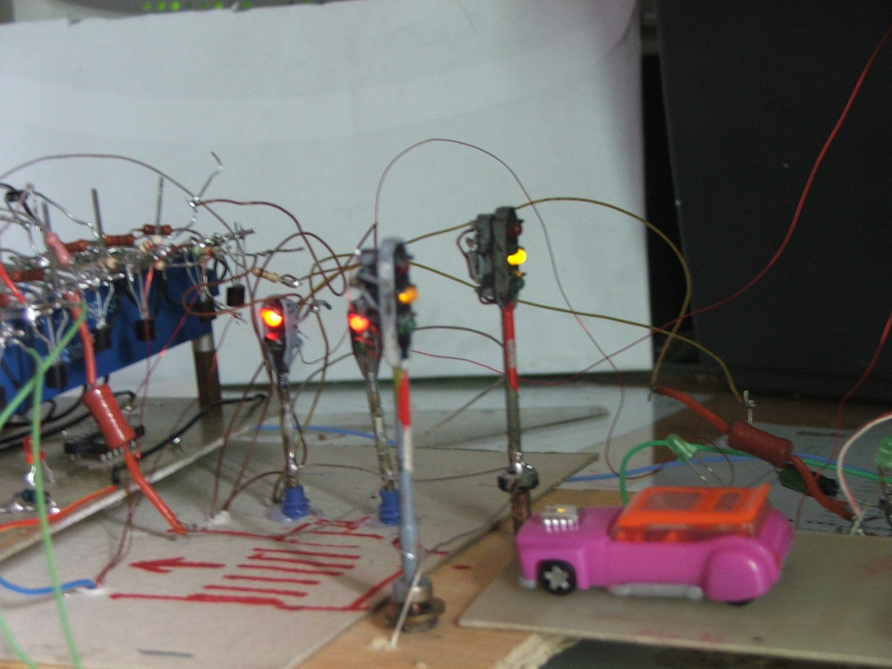 Miért, próba panelt nem lehet lefotózni ? Vagy kapcsolási rajzot készíteni róla ? Gondoltam hogy még nincs fixen kész, és beépítve egy terepasztalba. Az autó megállító elektromágnest miből készíted ? |