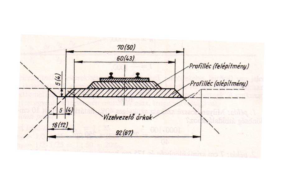 Az ágyazat vastagsága a valóságban a vasútvonal jellegétől függ. Viszont az ágyazatot is kétfelé bontjuk (mi vasutasok már csak ilyenek vagyunk, mindent elaprózunk a végtelenségig  ), alsó és felső ágyazatra (alsó ágyazat a betonaljak vagy talpfák alsó síkjáig tart, a felső ágyazat pedig kitölti az aljközöket és az aljvégek környékét). Vastagság szempontjából nekünk most az alsó ágyazat az érdekes, mellékvonalakon 20-30 cm, fővonalakon 50-57 cm a vastagsága. Ugye ez az, amit mi nem kőből, hanem parafából szoktunk építeni. A felső ágyazat pedig a kőszórás, ennek vastagságát az alkalmazott modellvasúti sínrendszer határozza meg.