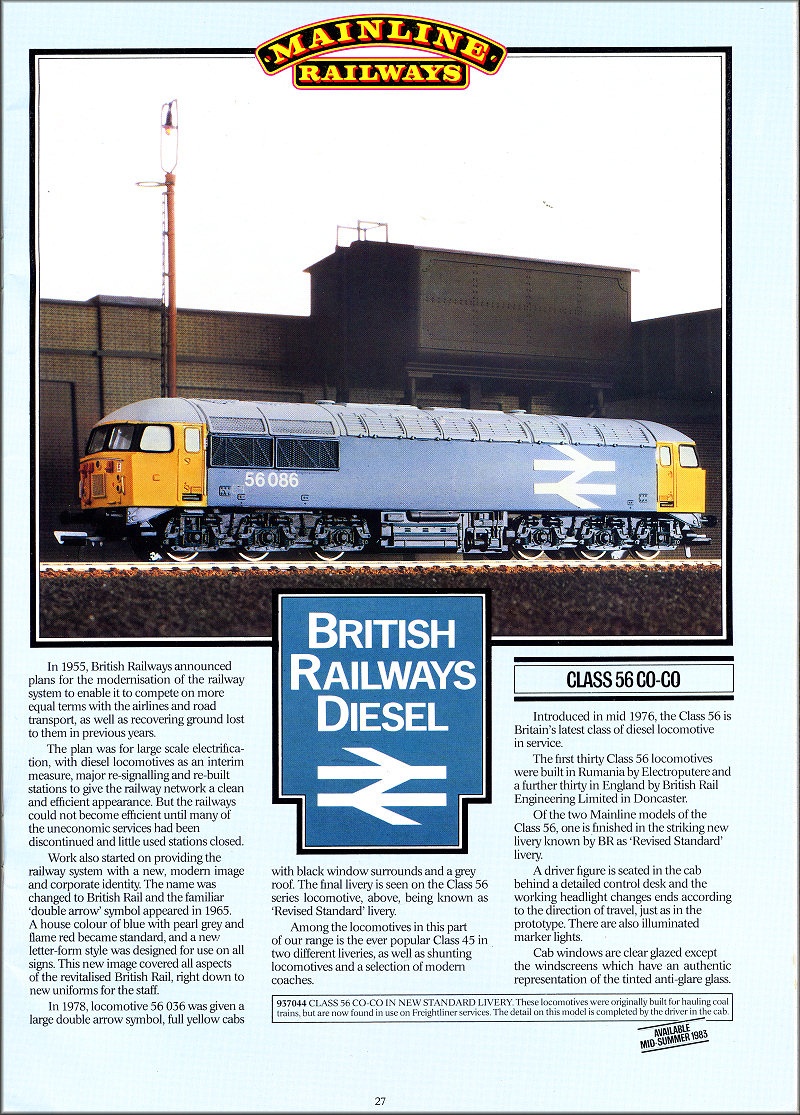 Ez a típus (Class 56) ismerős lehet a magyar vaspályákról, ilyet szerzett be nem is olyan régen a Floyd Zrt. A 659 001 pályaszámú mozdonya 56101 számmal, ilyen színterv szerinti köntösben tündökölt a floydos előtt. |