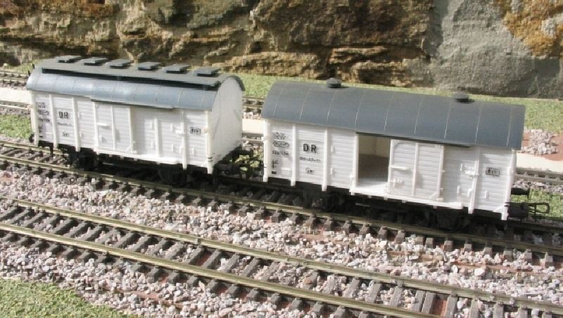 Nemrég baráti segítséggel és némi csere-berével sikerült hozzájutnom a képeken látható Dietzel hűtőkocsikhoz. Közel 50 éves modellek. A ventillátoros kocsin dörzskerék áttétellel menet közben forognak a ventillátorok. Az ajtók könnyedén záródnak-nyitódnak. A fékrendszer külön van felerősítve.
