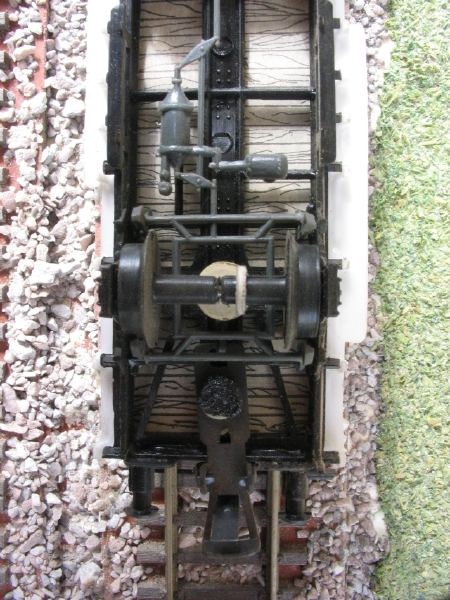 Ez egy Class 47/0 mozdony, sajnos előző tulajdonosa otromba módon leszedte az eredeti vonókészülékeit és ütközőit. Ezeket pedig H0-s (valószínűleg Piko Junior donorból) alkatrészekkel helyettesítette. Sajnos az ütközős barmolást már csak otthon vettem észre, a vonókészülékek feltűntek egyből, de az még "simán" belefért... |