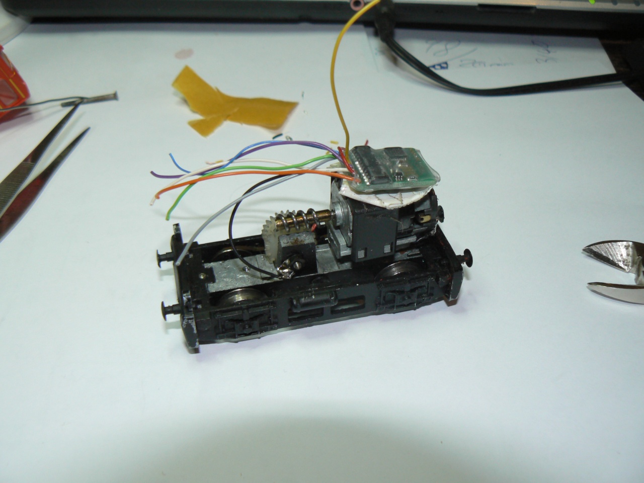A Trainmodules dekódere került bele végleges megoldással mert az átalakító panel még a kisebb motorral szerelt szériában sem fért el!