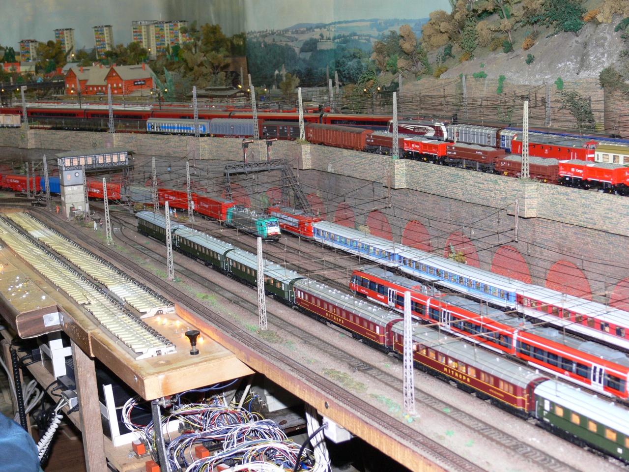 A csarnokban volt még néhány érdekes terepasztal 0-tól Z méretig. Ez utobbi modellezöt érdemes megemliteni, mert szivesen adta át bármelyik kissrácnak a kezelöpultot és engedett mindenkit vonatozni.
