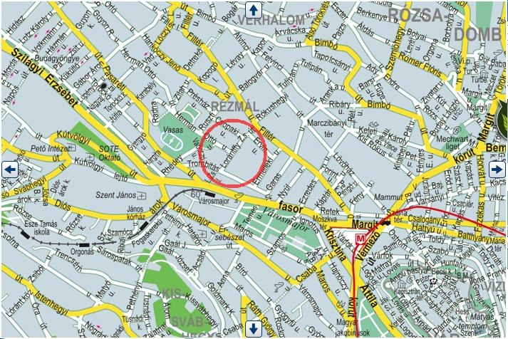 Kocsival a Moszkva tér felől Szilágyi E. fasor, Trombitás u. Lorántffy Zs u. Az utca fizető parkoló, de van beállási lehetőség az udvarra.